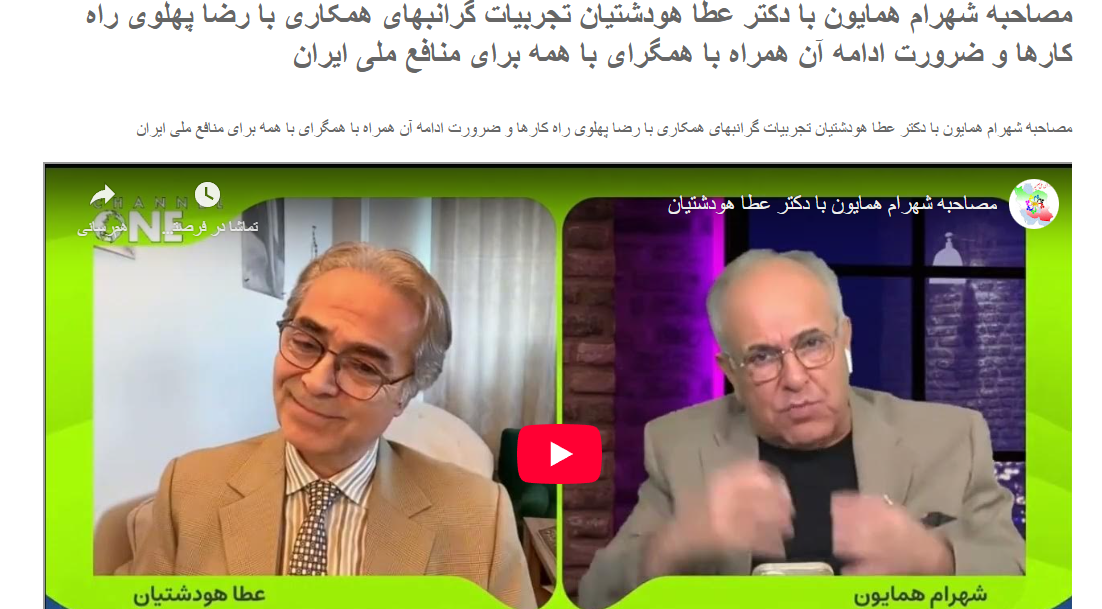 مصاحبه شهرام همایون با دکتر عطا هودشتیان تجربیات گرانبهای همکاری با رضا پهلوی راه کارها و ضرورت ادامه آن همراه با همگرای با همه برای منافع ملی ایران